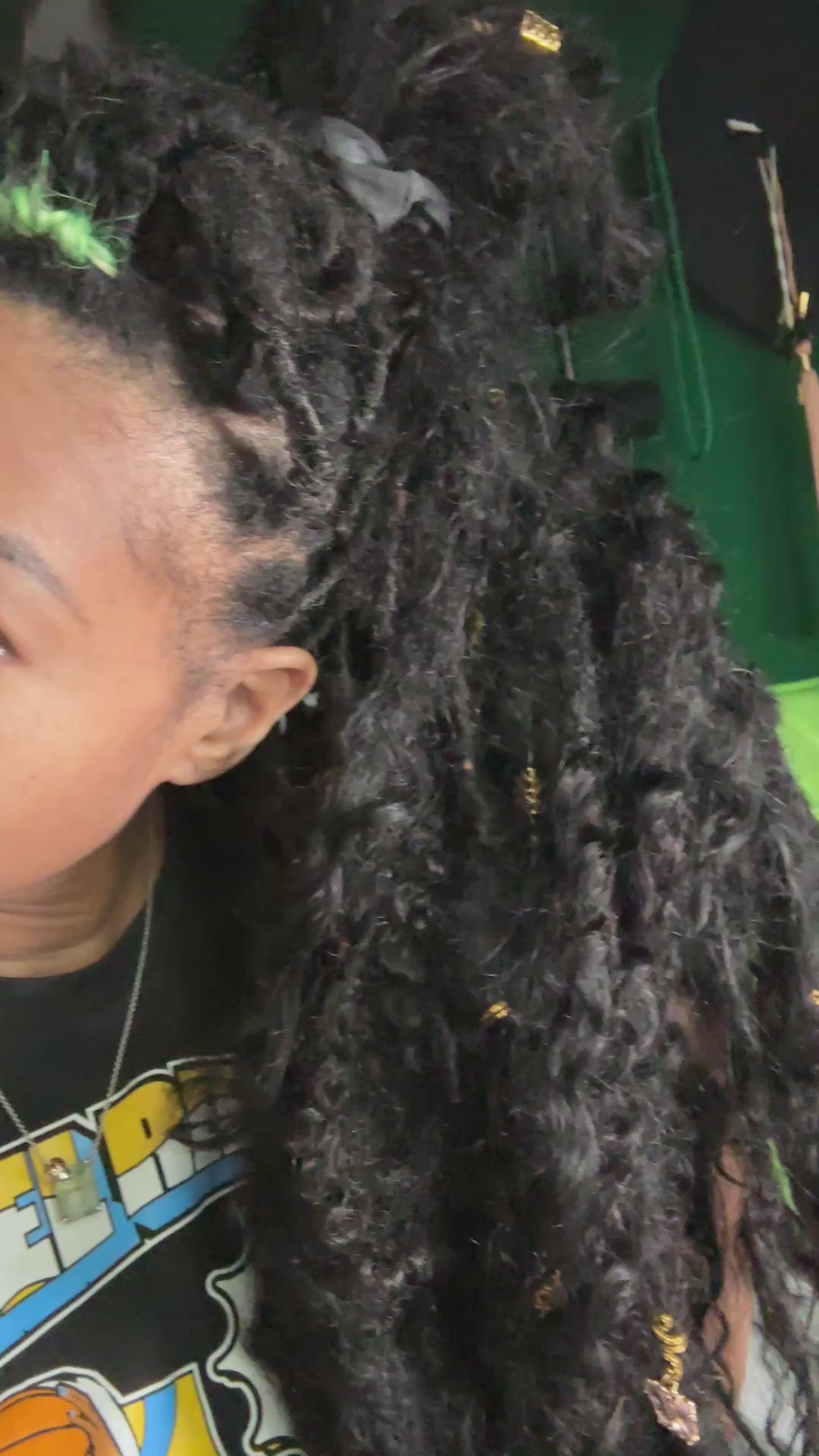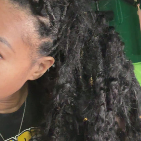 + One set (45-50) of hand crafted Goddess crochet faux loc extensions, made with 100% human hair (Brazilian bundles).